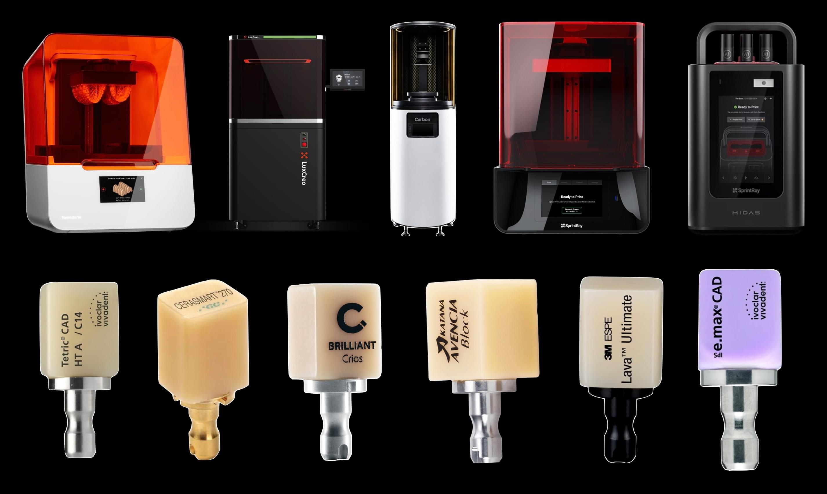 Zirconia, ceramic, and hybrid CAD/CAM block selection.