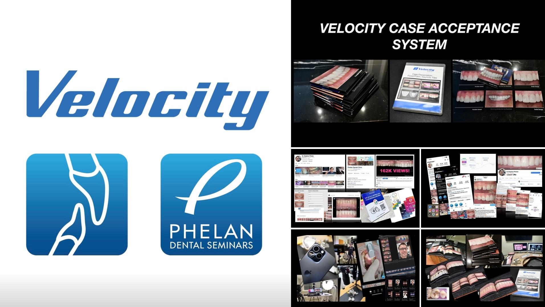 The Velocity Case Acceptance System is shipped directly to you, equipping you with a proven toolkit to help you confidently present treatment plans, build patient trust, and inspire more patients to say YES to veneers, implants, and full-mouth rehabilitations.